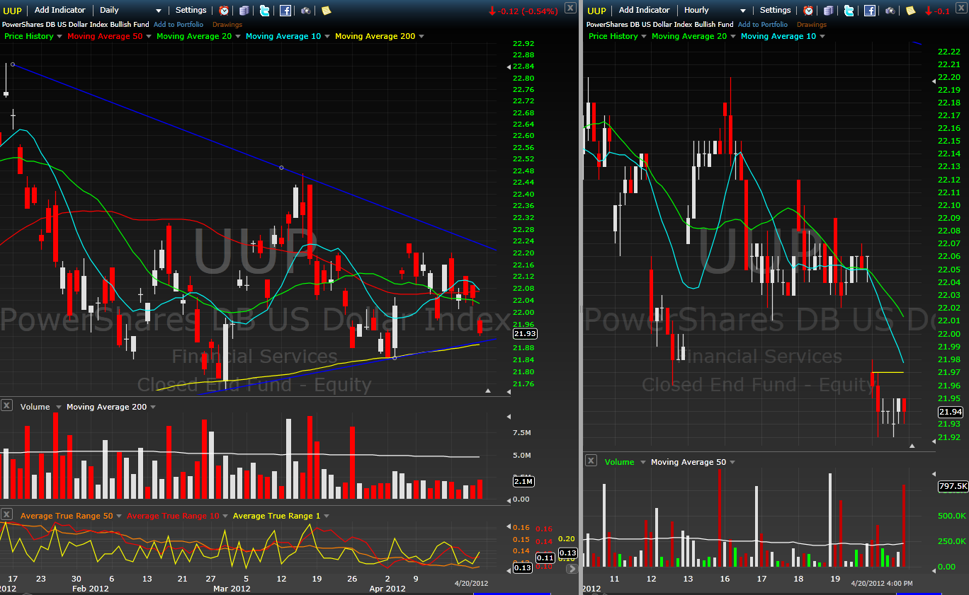 UUP<21.90 is bearish for the dollar and bullish for stocks.